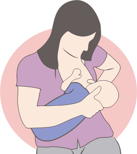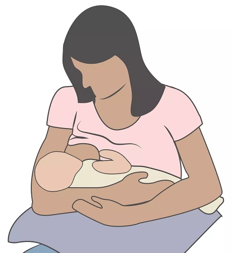 Այս դիրքն առավել հարմար է կրծքով կերակրումը նոր սկսող մայրիկների համար։ Այն թույլ է տալիս երեխայի գլուխը պահել ձեռքում՝ օգնելով նրան ճիշտ բռնել կուրծքը։ Մայրիկի ձեռքերը պետք է աջակցեն փոքրիկի գլխին և պարանոցին, իսկ մարմինը հենված լինի նրա մարմնին։