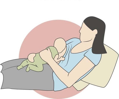 Եթե փոքրիկը դժվարանում է կուրծք բռնել կամ անհանգստանում է, այս դիրքը կարող է օգնել։ Մայրիկը պետք է հարմարեցնի իր դիրքը՝ հետ թեքվելով և երեխային կրծքին մոտեցնելով։ Մաշկը մաշկին շփումը խթանում է երեխայի սննդառության բնազդը և օգնում նրան ինքնուրույն գտնել պտուկը։