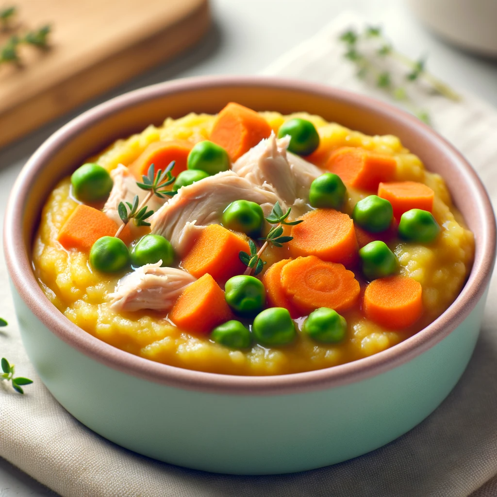 Ծիածանային բանջարեղենային պյուրե և հավի փափուկ շերտեր