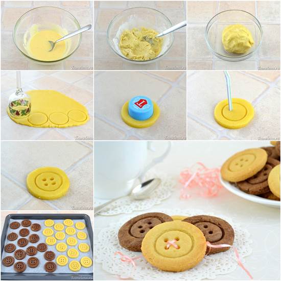 - Ձվի դեղնուցները լավ խառնել շաքարավազի և վանիլինի հետ, ավելացնել ալյուրը, ապա գդալով խառնել: Խմորը բաժանել 2 մասի: Առաջին մասից հունցել խմորը և դրել մի կողմի վրա: Երկրորդ մասի վրա ավելացրնել կակաոն, ձեռքերով տրորել, որպեսզի կակաոն լուծվի, ապա հունցել խմորի գունդը: