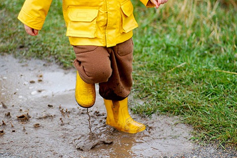 Ռետինե կոշիկներն ու հագուստը երեխային կպաշտպանի անձրևից: Կարելի է տանից դուրս գալ սովորական հագուստով, իսկ խաղահրապարակում հագնել պաշտպանիչ հագուստը: